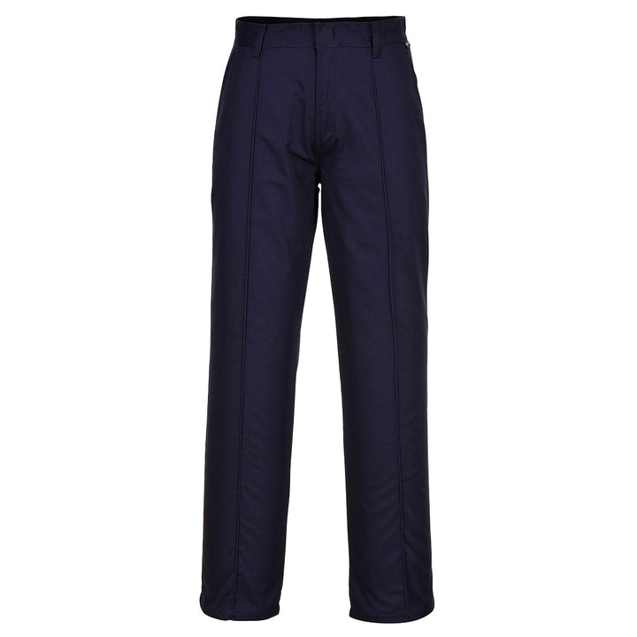 This classic style is durable and comfortable with a sewn in front crease which adds to the professional look. Features include two side pockets and a back jetted pocket.