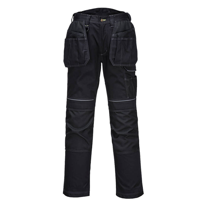 Rugged trouser made from high performing two-way stretch fabric to give maximum range of movement when working. Packed full of features to offer superb function and performance including top loading pre-shaped kneepad pockets, adjustable leg length, crotch gusset to reduce stress and prevent seam failure and a side leg cargo pocket. Oxford fabric reinforcement at key abrasion points and triple stitching throughout for maximum durability.