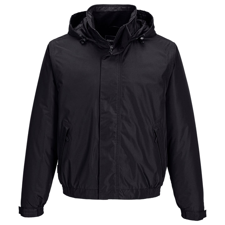 This top quality bomber jacket provides excellent protection against wet and windy conditions. It is completely waterproof and windproof. Fleece lining and padded sleeves provide optimum warmth and comfort to the wearer. The style has a clever pack away hood, zipped lower pockets and hook and loop adjustable cuffs.