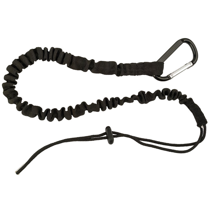 Essential for anyone working at height, the tool lanyard can be attached to the user's wrist or person. This can be done using the carabiner or elasticated drawstring, leaving the other end attached to your tool. This item prevents your tool from becoming a dangerous falling object and a safety hazard when working at height. Safe Working Load 2kg.